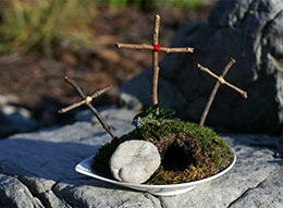 Junto com sua família, leia a história da Crucificação e Ressurreição de Jesus. Pode ser nos evangelhos (sugerimos Lucas 22: 7 – 24:12) ou em uma Bíblia para crianças. Se a crianças sabe ler, deixe-a participar da leitura também.